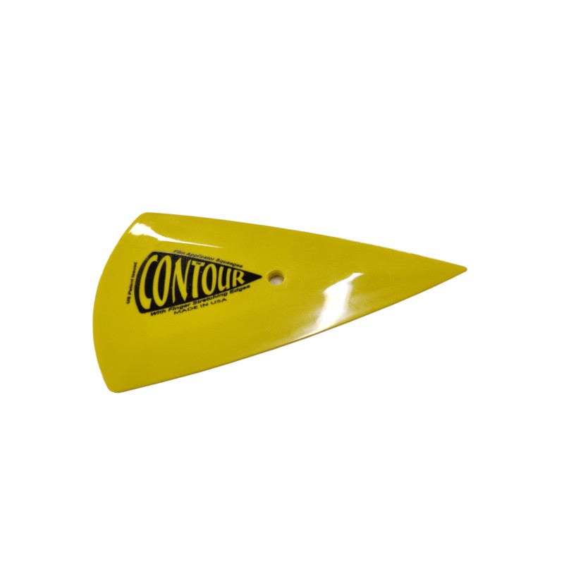 Keltainen Contour -kulmalasta, jolla saat sujautettua tummennuskalvon kätevästi tiivisteiden alle.