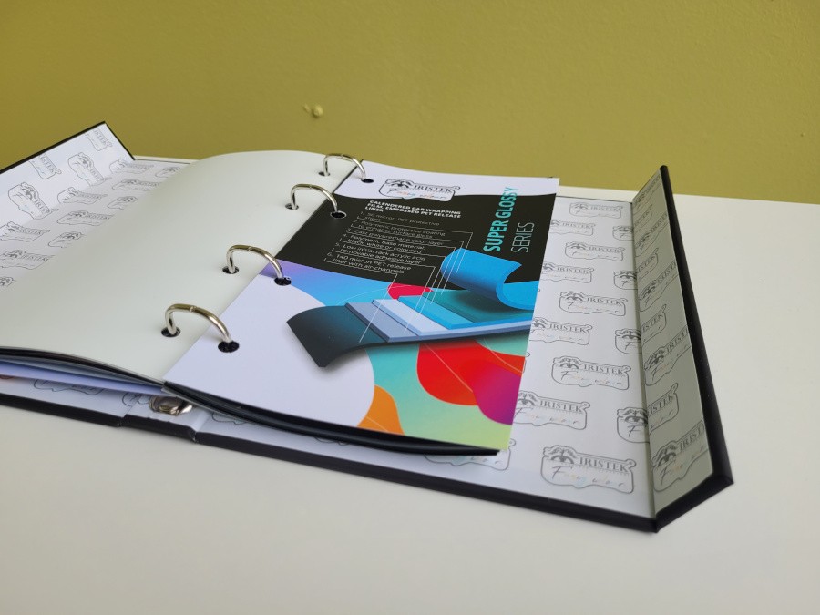 IRISTEK Premium malliviuhka sisältää kaikki Premium -sarjan (Super Glossy, Matte Chrome, Super Matte Metallic) yliteippauskalvot.
