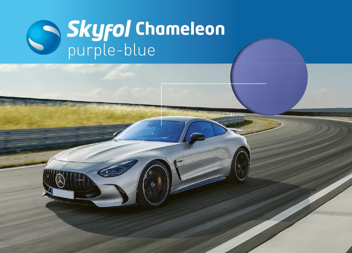 Luo laseihin näyttävä kameleonttimainen purppuran ja sinisen välillä väriään taittava ilme Skyfol Chameleon Purple-Blue lasien sävytyskalvolla. Erittäin haalea lähes täysin läpinäkyvä kalvo antaa lasille ainoastaan näyttävän kameleonttiefektin, mutta ei juurikaan tummenna sitä. Sävytä auton lasit Skyfol Chameleon sarjan tyylikkäillä sävytyskalvoilla.