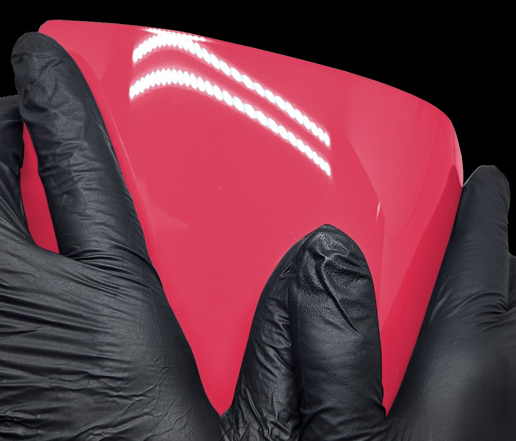 WunderVinyl Super Gloss+ sarjan yliteippauskalvot vievät teippien kiillon täysin uudelle tasolle! SG+ sarjan monikerroksinen ja paksu hybridirakenne mahdollistaa parhaan mahdollisen kiillon — pinnan kiilto on jopa parempi kuin nykyaikaisessa maalipinnassa. Yllä olevassa kuvassa on verrattu WunderVinyl Super Gloss+ Piano Black teipin kiiltoa toisen suositun valmistajan kiiltävän mustaan teippiin.