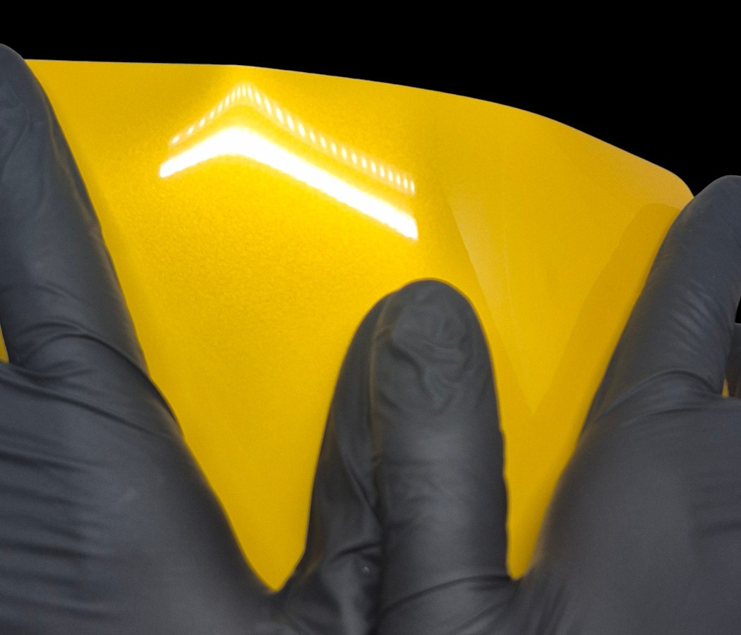 WunderVinyl Super Gloss+ sarjan yliteippauskalvot vievät teippien kiillon täysin uudelle tasolle! SG+ sarjan monikerroksinen ja paksu hybridirakenne mahdollistaa parhaan mahdollisen kiillon — pinnan kiilto on jopa parempi kuin nykyaikaisessa maalipinnassa. Yllä olevassa kuvassa on verrattu WunderVinyl Super Gloss+ Piano Black teipin kiiltoa toisen suositun valmistajan kiiltävän mustaan teippiin.