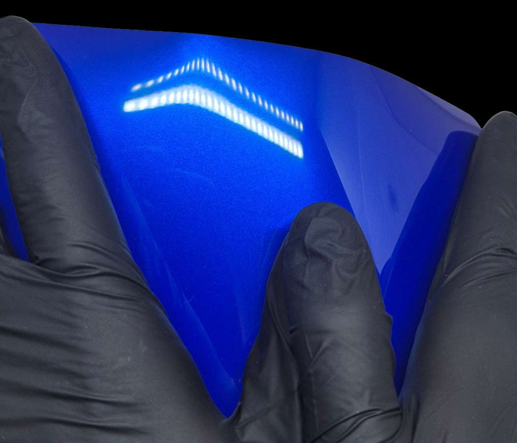 WunderVinyl Super Gloss+ sarjan yliteippauskalvot vievät teippien kiillon täysin uudelle tasolle! SG+ sarjan monikerroksinen ja paksu hybridirakenne mahdollistaa parhaan mahdollisen kiillon — pinnan kiilto on jopa parempi kuin nykyaikaisessa maalipinnassa. Yllä olevassa kuvassa on verrattu WunderVinyl Super Gloss+ Piano Black teipin kiiltoa toisen suositun valmistajan kiiltävän mustaan teippiin.