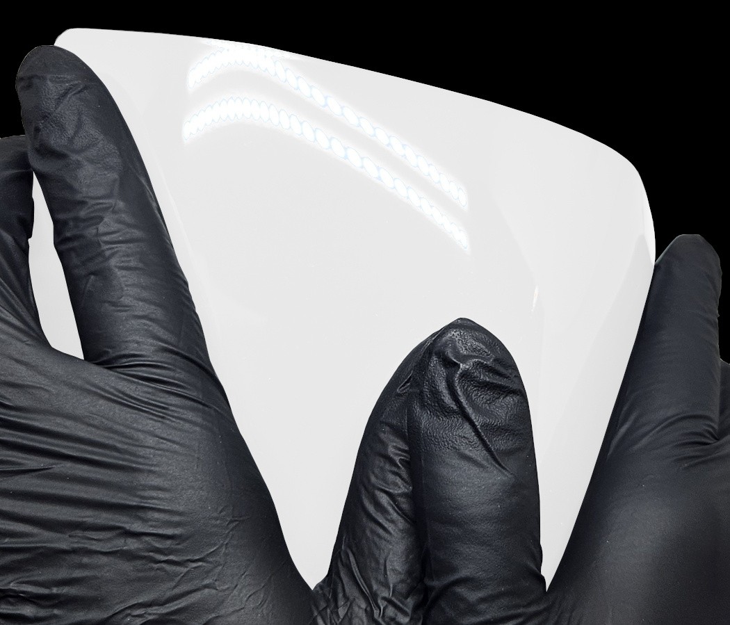WunderVinyl Super Gloss+ sarjan yliteippauskalvot vievät teippien kiillon täysin uudelle tasolle! SG+ sarjan monikerroksinen ja paksu hybridirakenne mahdollistaa parhaan mahdollisen kiillon — pinnan kiilto on jopa parempi kuin nykyaikaisessa maalipinnassa. Yllä olevassa kuvassa on verrattu WunderVinyl Super Gloss+ Piano Black teipin kiiltoa toisen suositun valmistajan kiiltävän mustaan teippiin.